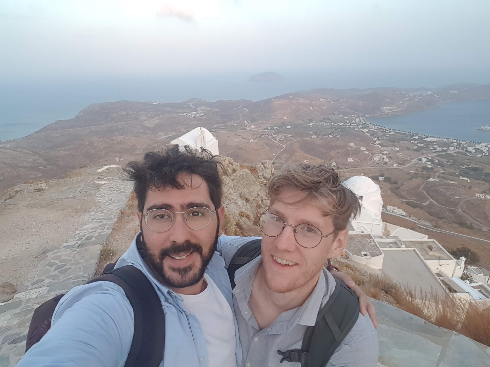 Yorgos (left) in Greece with his boyfriend Daniel (right)
